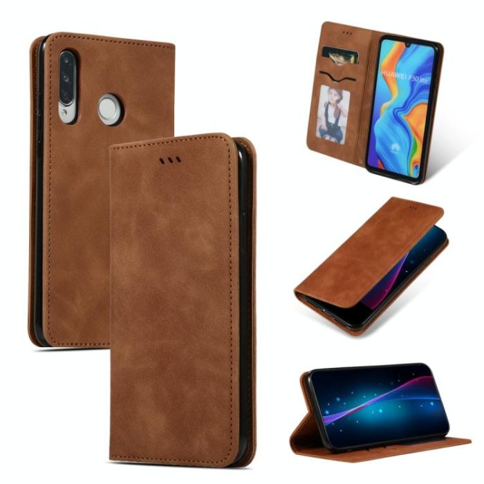 Retro Skin Feel Business Magnetic Horizontal Flip Leather Case for Huawei P30 Lite(Brown)
