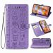 For Galaxy A11 Cute Cat and Dog Embossed Horizontal Flip Leather Case with Bracket / Card Slot / Wallet / Lanyard(Purple)