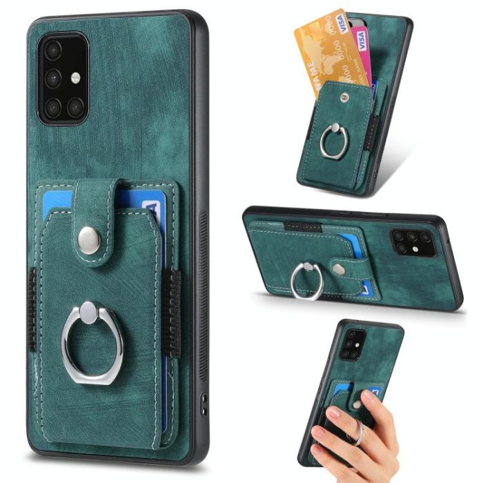 For Samsung Galaxy A71 Retro Skin-feel Ring Card Wallet Phone Case(Green)