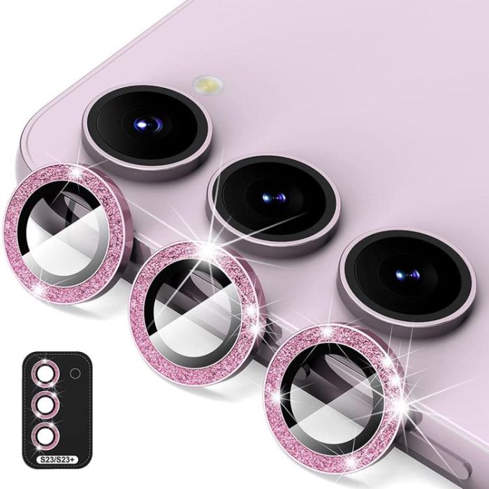 For Samsung Galaxy S23 5G / S23+ 5G ENKAY 9H Rear Camera Lens Glitter Aluminium Alloy Ring Tempered Glass Film(Pink)