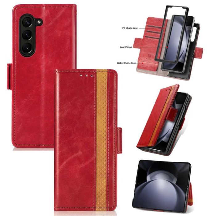 For Samsung Galaxy Z Fold5 5G CaseNeo Splicing Dual Magnetic Buckle Leather Phone Case(Red)