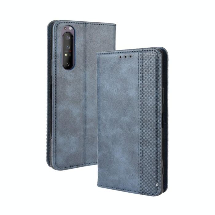 For Sony Xperia 1 II Magnetic Buckle Retro Crazy Horse Texture Horizontal Flip Leather Case , with Holder & Card Slots & Photo Frame(Blue)