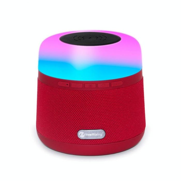NewRixing NR-3500 Multi-function Atmosphere Light Wireless Charging Bluetooth Speaker with Hands-free Call Function, Support TF Card & USB & FM & AUX (Red)
