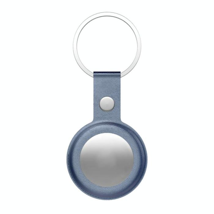 PU Leather Case Shockproof Anti-scratch Protective Cover with Keychain Ring Loop For AirTag(Navy Blue)