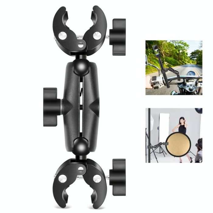 PULUZ Motorcycle Dualheads Crab Clamp Action Camera Handlebar Fixed Mount(Black)