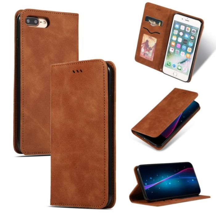 Retro Skin Feel Business Magnetic Horizontal Flip Leather Case for iPhone 8 Plus / 7 Plus(Brown)