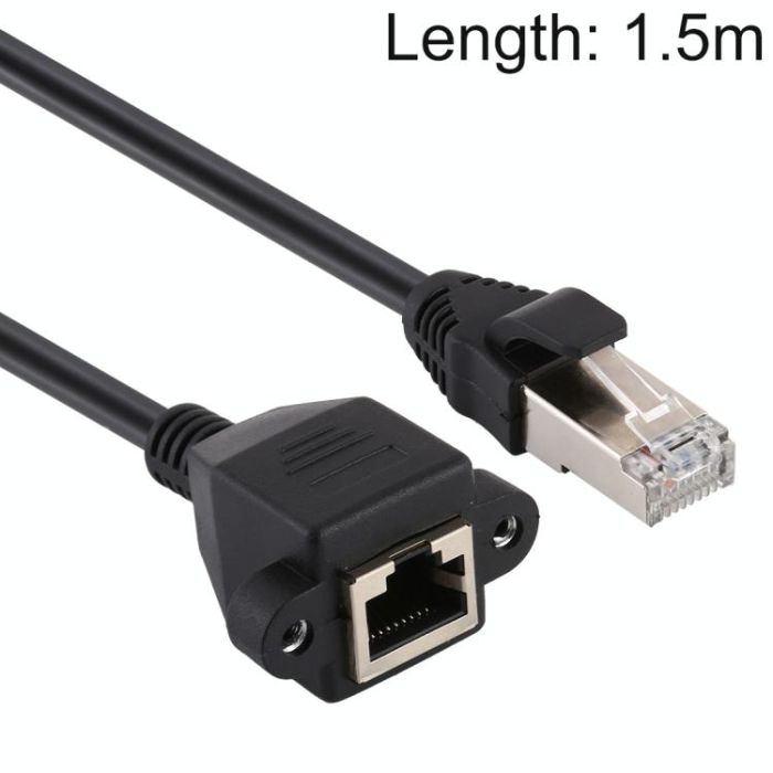 RJ45 Female to Male CAT5E Network Panel Mount Screw Lock Extension Cable, Length: 1.5m(Black)