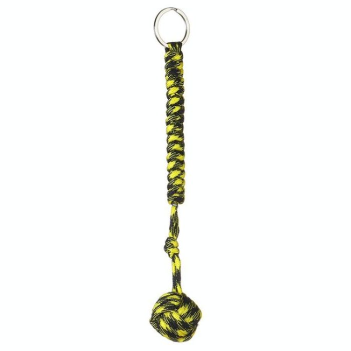 Outdoor Security Protection Black Monkey Fist Steel Ball Bearing Self Defense Lanyard Survival Key Chain(Black&Yellow)
