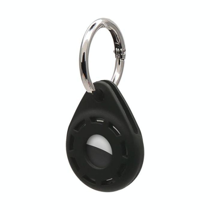 Silica Gel Anti-scratch Shockproof Protective Cover Soft Case with Keychain Ring Loop For AirTag(Black)