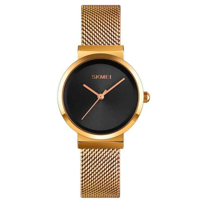 Skmei 1595 Fashion Elegant Scale Free Steel Mesh Belt Women's Watch Waterproof Business Student Quartz Watch Female(Gold)