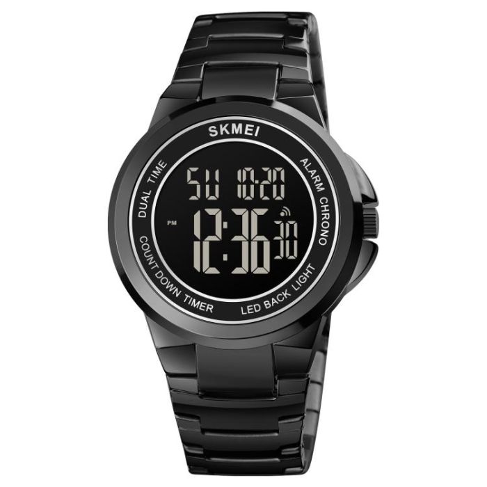 SKMEI 1712 Dual Time LED Digital Display Luminous Stainless Steel Strap Electronic Watch(Black)