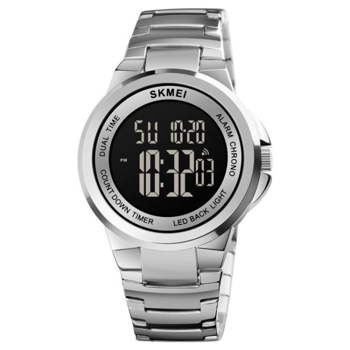 SKMEI 1712 Dual Time LED Digital Display Luminous Stainless Steel Strap Electronic Watch(Silver and Black)