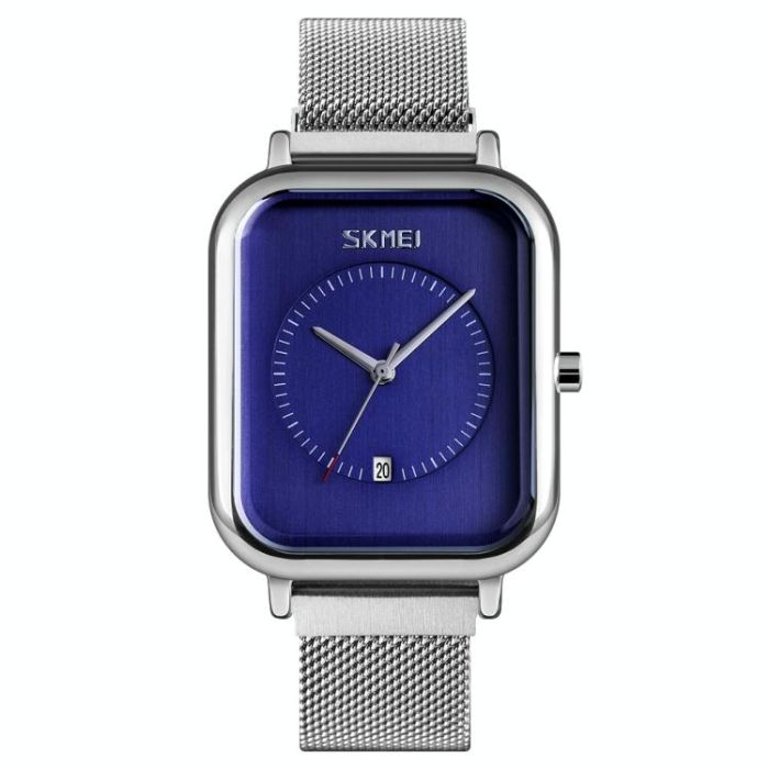 SKMEI 9207 Fashion Creative Simple Watch Men Magnetic Buckle Mesh Belt Steel Belt Couple Quartz Watch(Silver Blue)