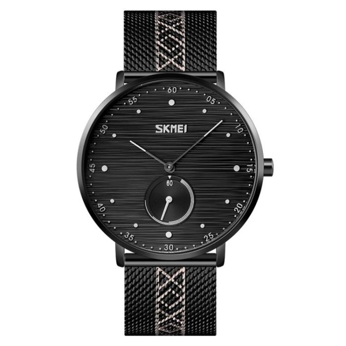 SKMEI 9218 Men Horizontal Striped Arabic Numeral Dial Mesh Belt Quartz Watch(Black)