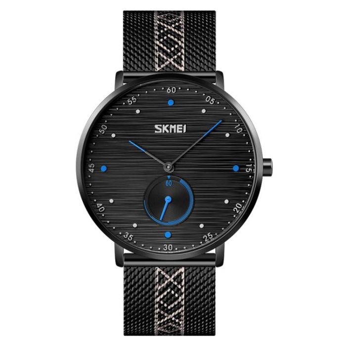 SKMEI 9218 Men Horizontal Striped Arabic Numeral Dial Mesh Belt Quartz Watch(Blue)