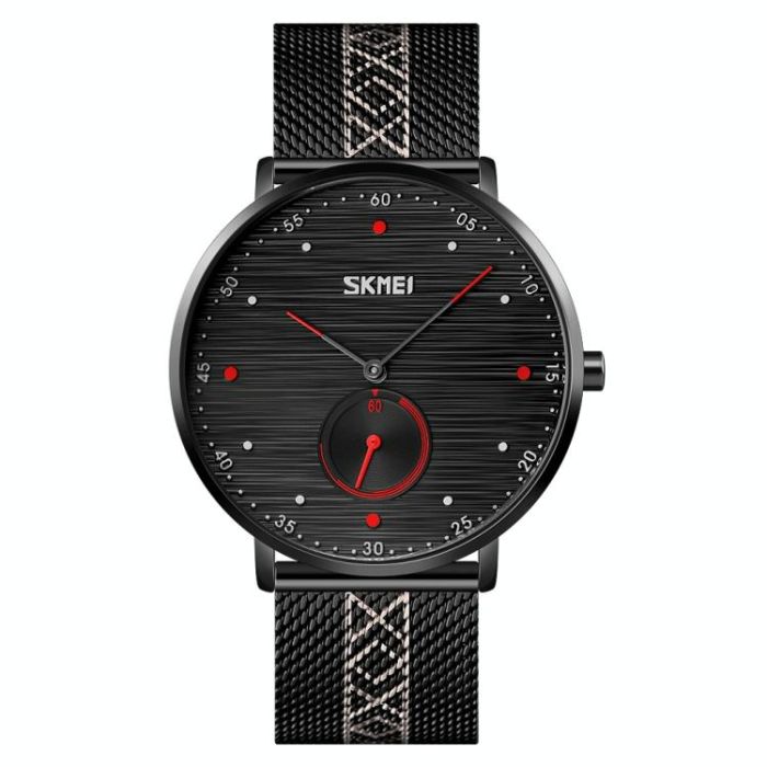 SKMEI 9218 Men Horizontal Striped Arabic Numeral Dial Mesh Belt Quartz Watch(Red)