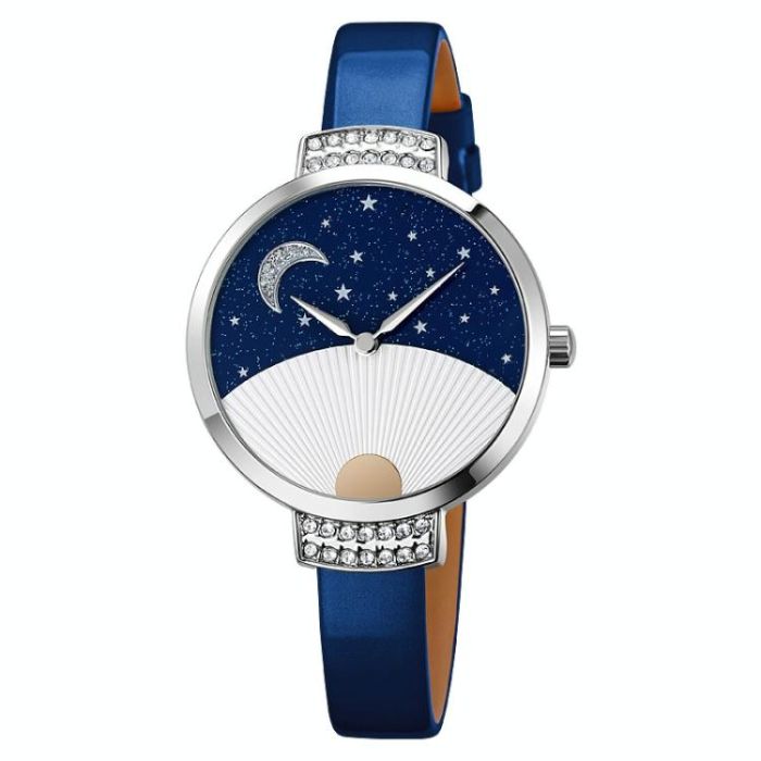 SKMEI 9279 Stainless Steel Buckle Genuine Leather Strap Waterproof Quartz Watch(Blue)