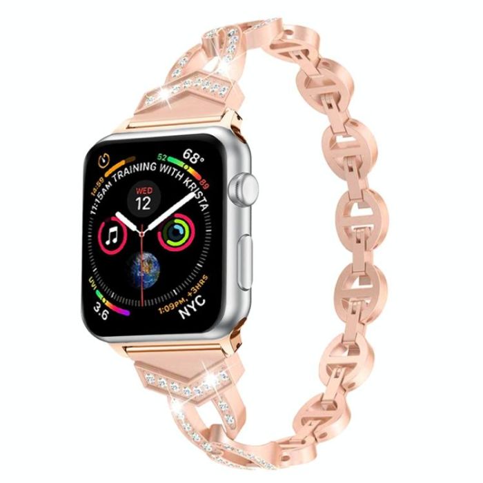 8-shaped VO Diamond-studded Solid Stainless Steel Wrist Strap Watch Band for Apple Watch Series 3 & 2 & 1 38mm(Rose Gold)