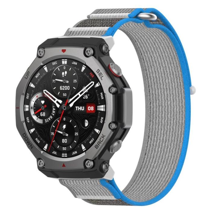 For Amazfit T-Rex 3 Two Tone Nylon Hook and Loop Fastener Watch Band(Blue Gray)