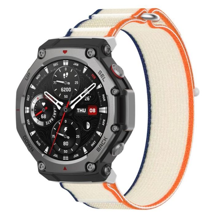 For Amazfit T-Rex 3 Two Tone Nylon Hook and Loop Fastener Watch Band(Orange Beige)