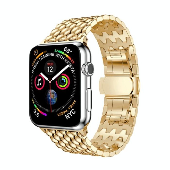 Dragon Grain Solid Stainless Steel Wrist Strap Watch Band for Apple Watch Series 3 & 2 & 1 42mm(Gold)