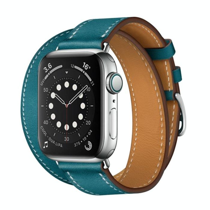 For Apple Watch 3 / 2 / 1 Generation 38mm Universal Leather Double-loop Watch Band(blue)