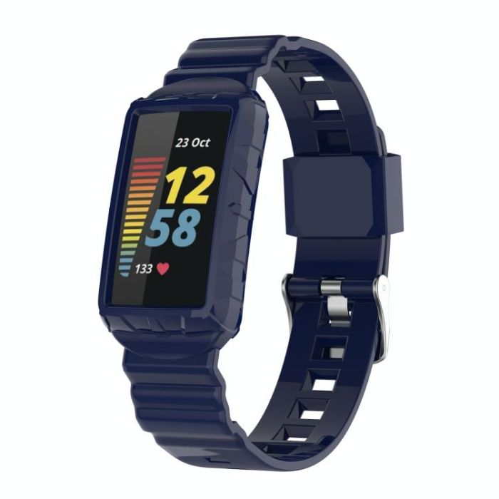 For Fitbit Charge 6 / 5 / 4 / 3 Armor Integrated TPU Watch Band(Navy Blue)