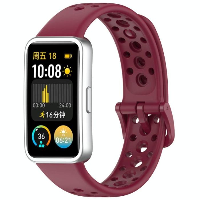 For Huawei Band 10 / 9 / 8 Metal Head Round Hole Nail Button Silicone Watch Band(Wine Red)