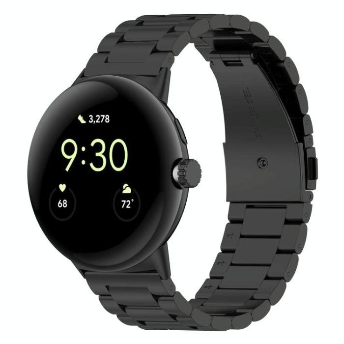 For Google Pixel Watch 2 Three Bead Stainless Steel Metal Watch Band(Black)