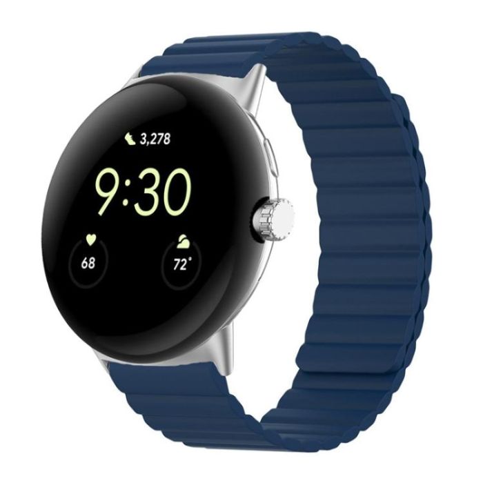 For Google Pixel Watch Two-section Magnetic Silicone Watch Band(Midnight Blue)
