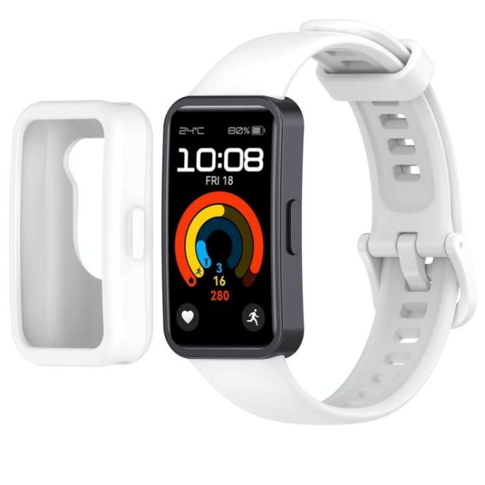 For Huawei Band 10 / 9 / 8 Color Button Watch Case Integrated Silicone Watch Band(White)