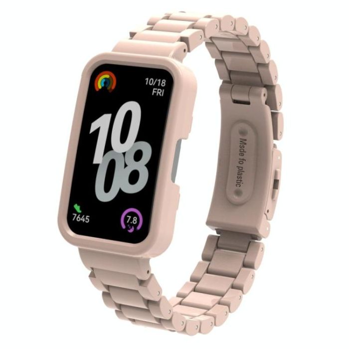 For Huawei Band 8 / 9 / 10 Watch Frame Integrated Three Beads Plastic Watch Band(Sakura Pink)