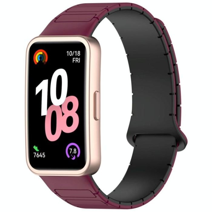 For Huawei Watch Band 10 / 10 NFC I-Shaped Magnetic Silicone Watch Band(Wine Red Black)