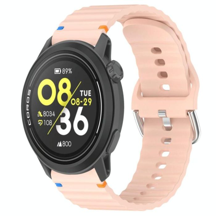 For COROS Pace 3 Wavy Grain Stitched 22mm Silicone Watch Band(Pink)