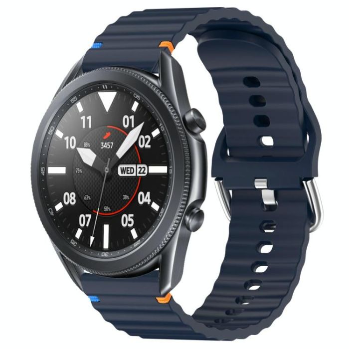For Samsung Galaxy Watch 3 45mm Wavy Grain Stitched 22mm Silicone Watch Band(Midnight Blue)