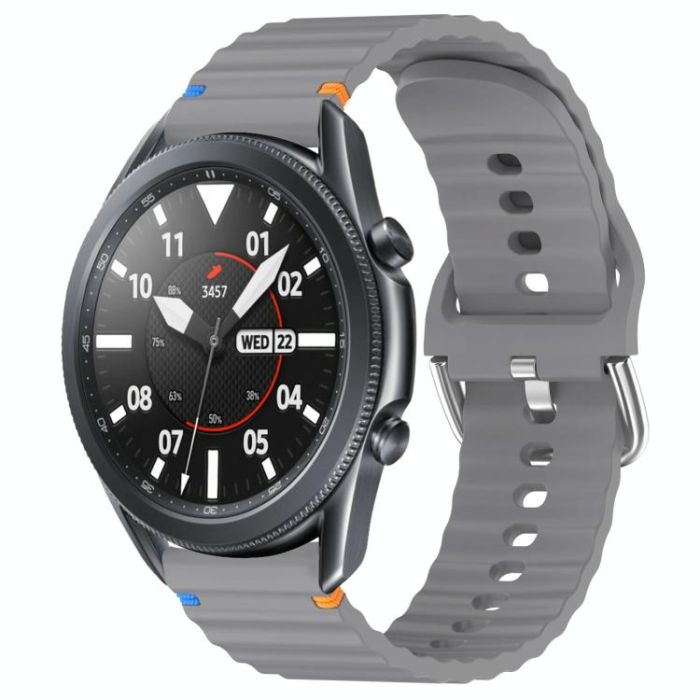 For Samsung Galaxy Watch 3 45mm Wavy Grain Stitched 22mm Silicone Watch Band(Space Gray)