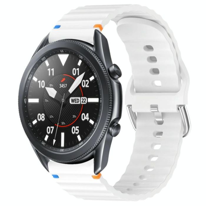 For Samsung Galaxy Watch 3 45mm Wavy Grain Stitched 22mm Silicone Watch Band(White)