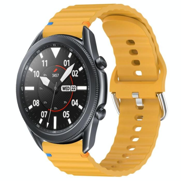 For Samsung Galaxy Watch 3 45mm Wavy Grain Stitched 22mm Silicone Watch Band(Yellow)