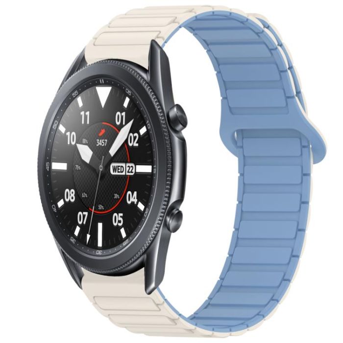For Samsung Galaxy Watch3 45mm Dual Color Magnetic Buckle Silicone Watch Band(White+Blue)