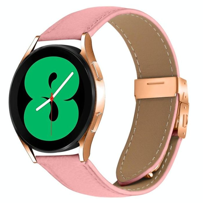 20mm Lychee Texture Rose Gold Turtle Back Buckle Leather Watch Band(Pink)