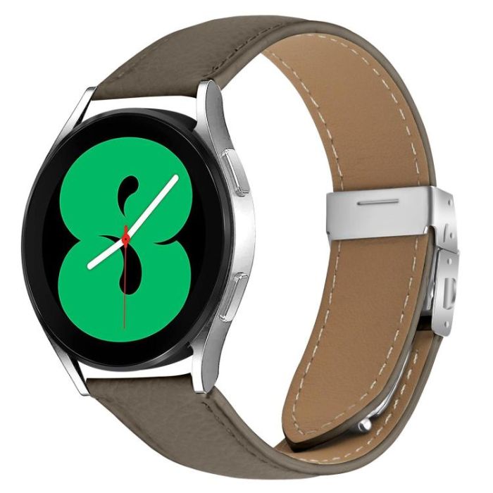 20mm Lychee Texture Silver Turtle Back Buckle Leather Watch Band(Gray)