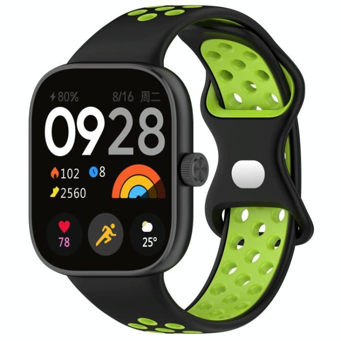 For Redmi Watch 4 Dual Color Perforated Silicone Watch Band(Black Green)