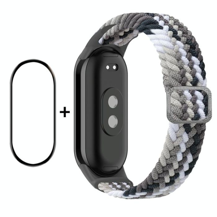 For Xiaomi Mi Band 8 ENKAY Hat-Prince 2 in 1 Set Full Coverage Screen Protector + Elastic Braided Nylon Watch Band(Colorful Black)