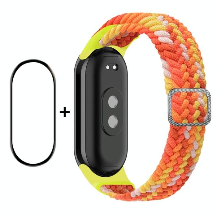 For Xiaomi Mi Band 8 ENKAY Hat-Prince 2 in 1 Set Full Coverage Screen Protector + Elastic Braided Nylon Watch Band(Colorful Orange)