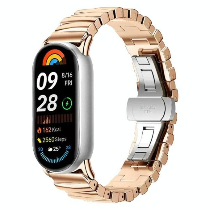 For Xiaomi Smart Band 9 / 8 Irregular Butterfly Buckle Metal Stainless Steel Watch Band(Rose Gold)