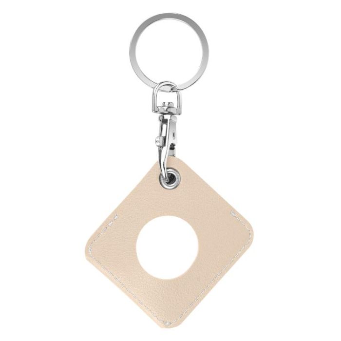 Square PU Leather Case Shockproof Anti-scratch Protective Cover with Keychain Ring Loop For AirTag(Apricot White)