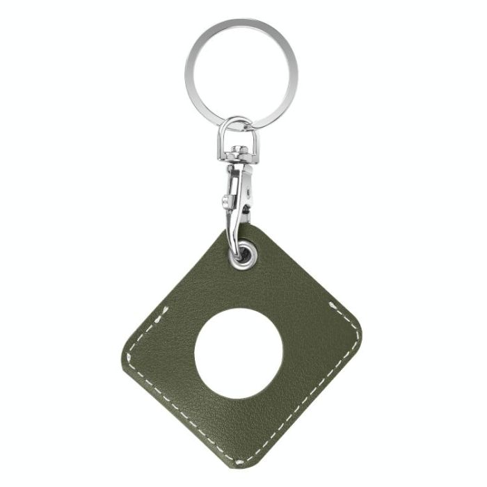 Square PU Leather Case Shockproof Anti-scratch Protective Cover with Keychain Ring Loop For AirTag(Army Green)
