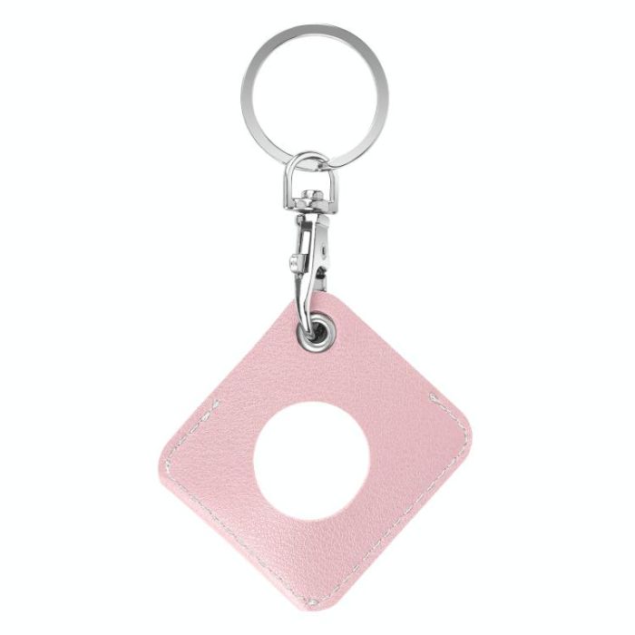 Square PU Leather Case Shockproof Anti-scratch Protective Cover with Keychain Ring Loop For AirTag(Cream Pink)
