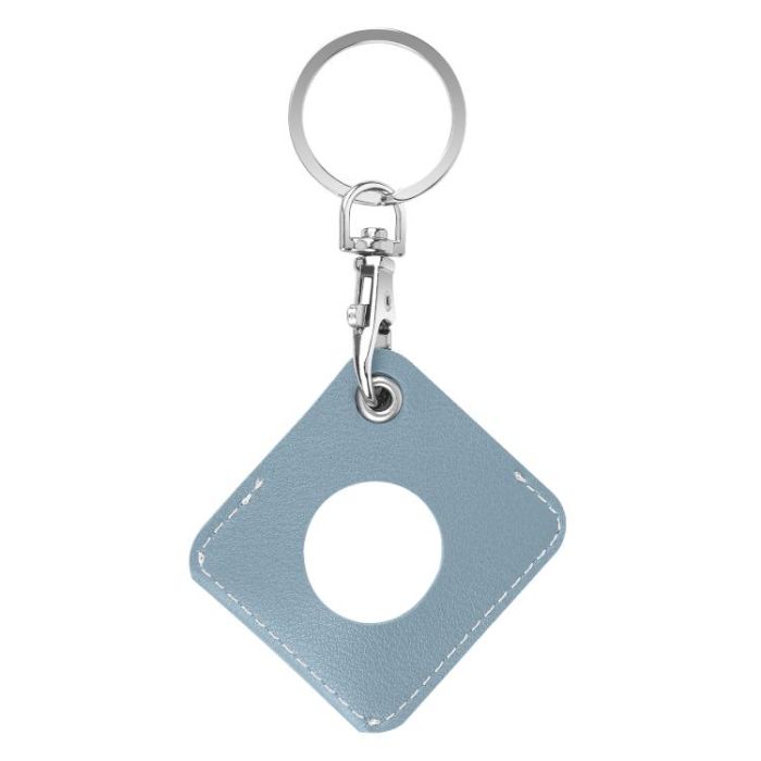 Square PU Leather Case Shockproof Anti-scratch Protective Cover with Keychain Ring Loop For AirTag(Haze Blue)