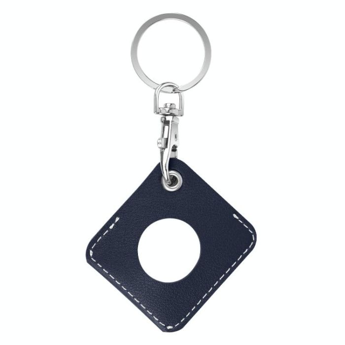 Square PU Leather Case Shockproof Anti-scratch Protective Cover with Keychain Ring Loop For AirTag(Night Blue)